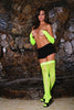 Neon Green fishnet thigh highs. One size fits most 90-160 lbs.